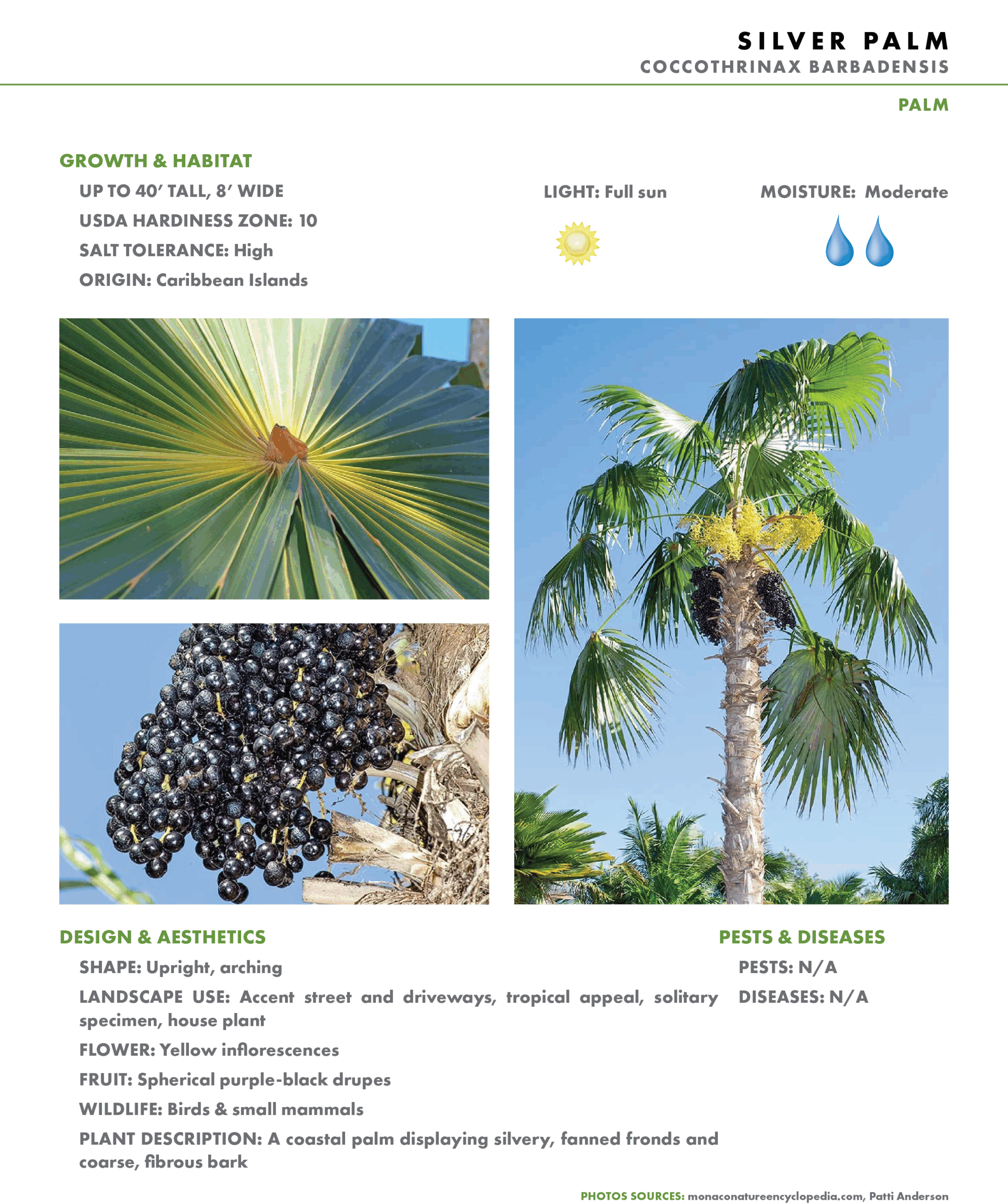 As September unfolds, the Silver Palm is the perfect fan palm for the start of the fall season, bringing its signature silver-tinted leaves and tropical elegance to any landscape. Native to Puerto Rico, Trinidad, and many other Caribbean islands, the palm is well adapted to coastal environments, thriving in salty conditions, sandy soils, and sunny locations. Its slender trunk can reach heights up to 40 feet, with a crown of fan-shaped leaves at its peak. The durability of its leaves allows the Silver Palm to withstand high winds from intense storms.